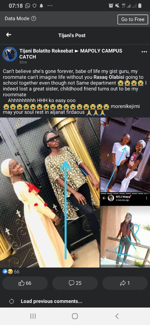 Titilayo Bolatito, the roommate to the deceased who was saddened at the death of her friend wrote on her Facebook thus.