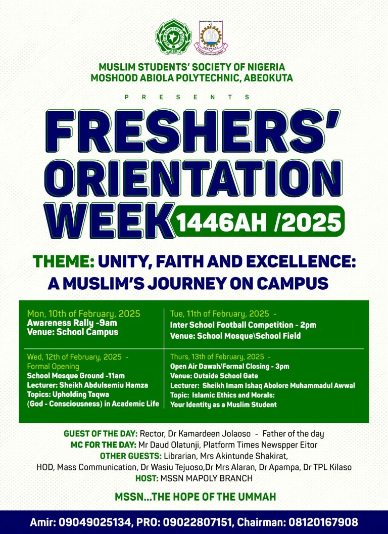 MSSN MAPOLY To Kick Off Freshers’ Orientation Week Program, Invites Rector, Other Muslim Lecturers To Its Formal Opening