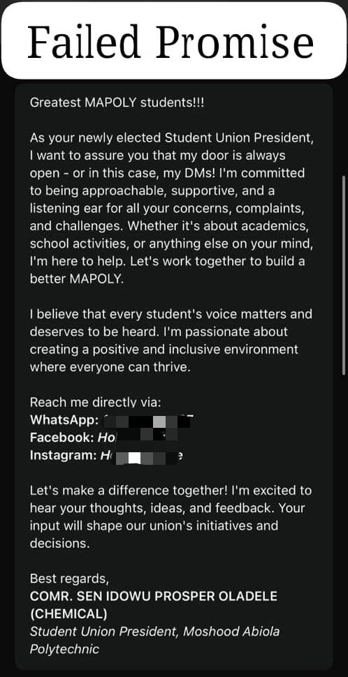 EDITORIAL: FAILED PROMISE: Is This One-Semester SUG President a Leader
