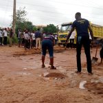 Students of Moshood Abiola Polytechnic under the aegis of the Student Union body gathered on Monday morning to rehabilitate the deplorable Mapoly road network.