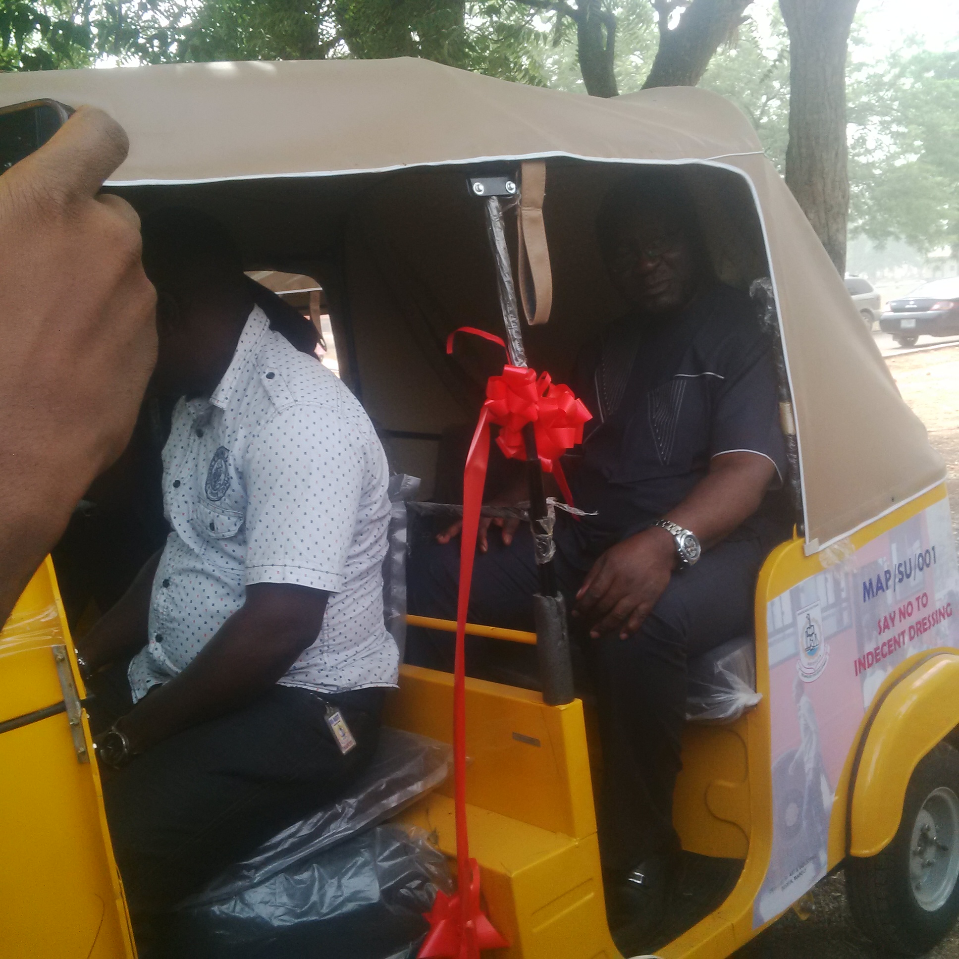 As part of the inauguration ceremony, the Rector, DSA and the Caretaker Chairman were transported from the venue to the bus-shed in one of the tricycles.